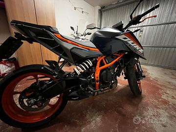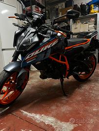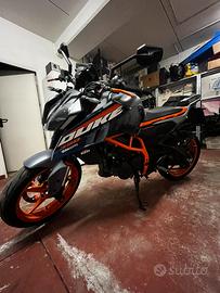La moto è dotata di Quickshifter+, monta tamponi di protezione ktm sia nelle ruote anteriori che posteriori, monta leva freno anteriore e frizione in ergal arancioni ktm, monta il sellino in plastica per il monoposto e anche il portatarga corto omologato.