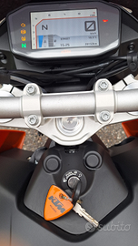 Vendo KTM Duke 690 anno 2018 km 20153. Moto davvero in ottime condizioni generali, mai caduta e completamente originale ad eccezione del cupolino Puig, molto utile nei tratti stradali a scorrimento veloce. Accessoriata con supporto del bauletto, presa ricarica USB e "Track Pack" KTM che comprende le tre mappe del motore Rain, Street e Sport. ABS disinseribile. Tagliando completo con controllo gioco valvole e pulizia corpo farfallato eseguito a 17103 km, forcelle revisionate (lavori dimostrabili). La revisione scade a marzo 2027. Bollo pagato fino al 30/09/2026.