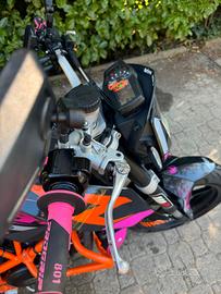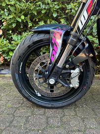 Vendo KTM Duke 690 ABS del 2012 guidabile con A2 solo 19900km tenuta maniacalmente, parcheggiata sempre in box. Il colore attuale della moto è dato da delle GRAFICHE che sono semplicemente RIMOVIBILI, il colore originale al di sotto è nero. Inserita da concessionario KTM la mappa ufficiale Akrapovič full power 75cv per KTM DUKE 690 CUP. Alcune POWERPARTS kit 690 cup tra cui Scarico OMOLOGATO AKRAPOVIČ evolution line cerchi alleggeriti MARCHESINI pinze e pompa Brembo 16x18. Tagliandata sempre e non oltre i 4k km, Pirelli Diablo rosso III all’80%. Appena cambiato kit trasmissione catena DID ORO, corona e pignone ha appena 100km. Sella passeggero compresa MAI pista Vendo per scarso utilizzo. NO PERMUTE. Richiesta serietà massima, no perditempo, contattare solo se realmente interessati. 329 889 5596 Federico