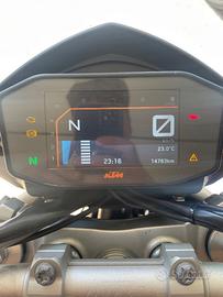 KTM DUKE 690 DEPOTENZIATO 25kw Come da titolo vendo Ktm duke 690 anno 2018 depotenziato da casa madre a 25 kw quindi utilizzabile con patente A2. La moto monta i seguenti accessori: - scarico leovince (cedo anche lo scarico originale) - gomma posteriore sostituita da 1000 km - paramani originali KTM colore nero attualmente non montati - borsa originale porta documenti KTM - antifurto originale KTM con relativo telecomando anche quello di scorta - batteria sostituita nel 2024 La moto ha 14700 km anche se attualmente è in uso per brevi spostamenti quotidiani. Resto a disposizione per ulteriori informazioni o foto.