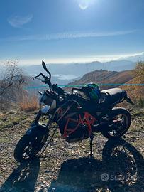 Vendo ktm duke 690 abs del 2016 depotenziata per patente a2 (depo a libr, ma si può anche depotenziare a motore) 23 mila km appena tagliandata, gomme nuove ,monta puntale freno post. e leva cambio anodizzate arancio, paraleve, barre protezione motore, tamponi forcella ant. e nottolini post per cavalletto centrale, terminale akrapovic, trasmissione nuova (catena,corona,pignone), ho altri ricambi ,vendo perché voglio cambiare tipologia di moto. valuto scambi anche con conguaglio e con cross non targate .