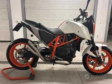Spettacolare KTM Duke 690, anno 2012, 30.000 km, scarico Hurric ( 390 euro ) omologato, specchietti carbonio , portatarga inclinabile, leve e particolari in alluminio arancio, perfettamente funzionante , cambio olio e filtri eseguiti 6 mesi fa e da allora non più utilizzata , completa anche degli accessori originali, incluso cavalletto e mantenitore batterie . Gomme in ottime condizioni, tenuta sempre in garage con telo coprimoto . Vendo per completo inutilizzo ( avrò fatto 300 km in 3 anni ) . Uniche cose da dire: revisione appena fatta e frecce e stop in carbonio nuovi. La moto non parte , cambiato motorino di avviamento ma probabilmente da sostituire la ruota libera . Visibile presso officina in via Dario Campana a Rimini