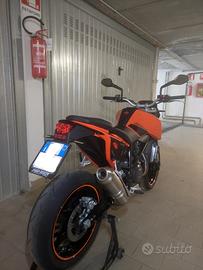 Vendo Ktm Duke 690 in condizioni impeccabili. La moto monta alcuni accessori come portatarga, frecce led dinamiche, corona ergal, kit grafiche aggiuntive (non è stata rimossa nessuna grafica originale). Fornisco tutti i pezzi originali, la moto volendo è ripristinabile al 100% nelle condizioni in cui è uscita dalla fabbrica. Nessun incidente, nessuna caduta, motore che non ha mai consumato un filo d'olio. La moto ha eseguito ogni anno scrupolosa manutenzione ordinaria, ed è appena stato eseguito un intervento di ripristino totale al comparto frenante. Revisionata fino al 2027. Moto unica e divertentissima, vendo solo per passaggio a moto di tipologia differente. Moto simile a 790 390 vitpilen svartpilen husqvarna 701 mt-07 mt-09 sv650 hornet z650 smc supermoto hypermotard