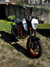 Vendo a malincuore stupendo Duke 690r ( 4500 trapasso incluso). La moto monta kit EVO 1 di casa KTM (mappa scarico cassa filtro e alberi a camme maggiorati) con scarico diretto completo MIVV e silenziatore AKRAPOVIC. Sono in possesso anche di scarico completo AKRAPOVIC con catalizzatore e scarico originale, unghia monoposto, carene anteriore di riserva e altre componenti . Quest' anno è stato eseguito il tagliando regolare più controllo gioco valvole. L unico difetto e il silenziatore, segnato per una scivolata del vecchio propietario. Moto guidabile con patente A2