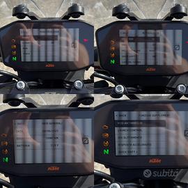 -pacchetto elettronico COMPLETO con 4 mappe motore, cambio elettronico in salita e discesa, Abs disinseribile al posteriore, controllo di trazione regolabile e modalità antiimpennata disinseribile.