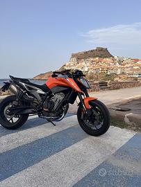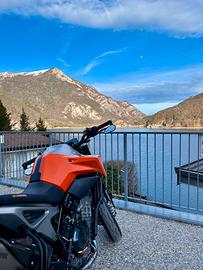 Vendo KTM duke 790 anno 2018 con 15.549 KM. La moto è stata acquistata da me a febbraio 2024 in un concessionario a Crema. Monta scarico completo in titanio akrapovic stupendo, pacchetto elettronica completo (quickshifter salita e discesa, mappe e anti impennaga), gomme pirelli diablo rosso 4 utilizzate pochissime (cambiate anno scorso a giugno e utilizzata fino a settembre), tagliando appena eseguito. Filtro sportivo e mappa akrapovic. Modello con motore austriaco. Monte sella sia guidatore che passeggero power parts originali. Specchietti e leve aftermarket. Vari segni di usura. Moto mai incidentata. Per altre informazioni chiedete. Valuto scambio con Hypermotard 950