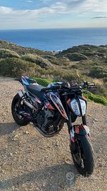 Vendo per cambio tipologia ktm duke 790 depotenziata solo a libretto perciò usabile con patente A2, mappata al banco 105 cv, la moto é come si vede, tenuta benissimo e mantenuta con cura, sempre fatta scaldare, unico proprietario, mai sinistri, sempre custodita in garage, mai pista, ancora in garanzia, sempre tagliandata in officina ufficiale ktm, gomme pirelli diablo rosso corsa 2