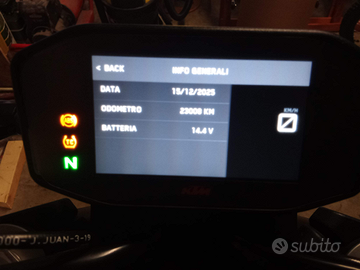 Moto impeccabile,tech pack completo,secondo proprietario, akrapovic omologato ktm,gommata Power Cup 2 con 300 km all'attivo.nessun lavoro da fare, tagliandi certificati,nessun difetto,perdita, .prezzo non trattabile