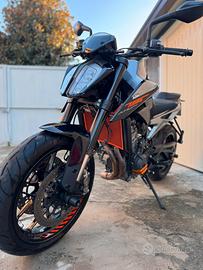 KTM Duke 790 anno 2019 - 105 cv Versione con tutti pacchetti optional elettronici inclusi (cambio elettronico, mappa track). Vendo per passaggio ad altra tipologia di moto. Sempre costudita in garage, tagliandata regolarmente. Accessori: terminale di scarico Exan, pararadiatore arancio R&G, tamponi paratelaio, kit monoposto, cupolino sport, porta targa corto, sensori TPMS e presa USB a manubrio.