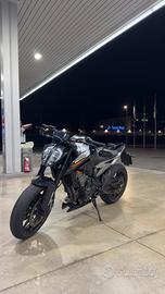Vendo Ktm duke 790 2018 depotenziata solamente a libretto, 100cv moto comprata ad inizio stagione con 25k km, tutti i tagliandi e i lavori fatti in officina Ktm certificata con libretto tagliandi che accerta tutti i lavori eseguiti con anche le fatture, varie powerparts Ktm originali( ovviamente dispongo di tutti i pezzi originali) la moto ha un graffio sulla carena laterale dovuto ad una scivolata a bassa velocità del vecchio proprietario ( solo estetica ovviamente 100€ carena nuova) terminale akrapovic dal valore di 1100?. Non vendo pezzi separatamente.