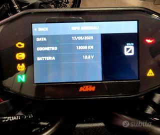 MOTORMANIA LANZILLOTTA VENDE FANTASTICA KTM DUKE 890 R PARI A NUOVO CON SOLI 12000KM ,MECCANICA PERFETTA COSI COME LA CARROZZERIA ,DA VETRINA !! CON ESPERIENZA ULTRAVENTENNALE LE NOSTRE MOTO SONO TUTTE CONTROLLATE ED ISPEZIONATE SIA ESTETICAMENTE CHE MECCANICAMENTE DA ESPERTI. LA MOTO VERSA IN CONDIZIONI ESTETICHE E MECCANICHE PERFETTE NEMMENO UN MINIMO SEGNO DI USURA. MAI CADUTA MAI SINISTRATA MAI SUBITO INTERVENTI DI VERNICIATURA.MOTO TUTTA TAGLIANDATA ,GOMMATA E REVISIONATA ,CHIAVE DOPPIA CHIAVE E TUTTI IL CORREDO DEI LIBRETTINI. INOLTRE SEMPRE COMPRESO NEL PREZZO 1 ANNO DI GARANZIA CASA MADRE ,FINANZIABILE INTERAMENTE SENZA ANTICIPO. POSSIBILITÀ DI USUFRUIRE DEL SERVIZIO CONSEGNA A DOMICILIO IN TUTTA EUROPA. ACCETTIAMO PERMUTE DI NOSTRO GRADIMENTO. APERTI ANCHE SABATO E DOMENICA PREVIO APPUNTAMENTO. PER ULTERIORI INFORMAZIONI FOTO O DETTAGLI ANCHE WHATSAPP CHIAMA NUMERO OPPURE VISITATE IL NOSTRO SITO. MOTORMANIA DAL 1997 ESPERIENZA E PROFESSIONALITÀ AL VOSTRO SERVIZIO!MOTORMANIA SI ASSUME LA RESPONSABILITÀ DI QUANTO SCRITTO SULL ANNUNCIO IN MERITO AL PRODOTTO E QUALORA NON FOSSE CONFORME A QUANTO DETTO SIAMO PRONTI A RISARCIRE I DANNI RELATIVI ALLE EVENTUALI SPESE DI VIAGGIO SOSTENUTE PER RAGGIUNGERCI. MASSIMA SERIETÀ