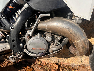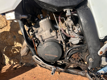 Vendo per inutilizzo, moto targata (collaudata fino a luglio) perfettamente funzionante eccetto frecce e faro anteriore anabagliante (abbagliante funziona). La moto non ha installato il conta chilometri ma lo fornisco insieme a un conta ore e svariati pezzi di ricambio (come vedete in foto). Pistone e biella sono in ottime condizioni, mai fatto incidenti o cadute, mai usata in enduro o in pista. sempre rgolarmente revisionata.