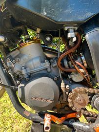 Tutti i pezzi originali, tra cui testa, scarico, porta targa, faro e varie plastiche arancioni e nere di ricambio