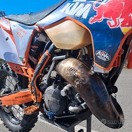 Vendo ktm exc 125 usato esclusivamente per fare enduro, la moto ha dei difetti estetici ma la ciclistica e il motore sono perfettamente funzionanti. Il motore ha 764h e il pistone ha 63h l'olio è stato cambiato 29h ore fa. La moto è targata, immatricolata e regolarmente revisionata (scadenza 01/2027) - trasmissione nuova - pneumatico ant. 80% post. 50% - espansione hgs - silenziatore F fresco - impianto elettrico esterno Energysistem Vendo per passaggio a cilindrata maggiore. Prezzo trattabile.