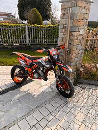Annuncio Vendo ktm exc 125 2013 six days. La moto ha circa 110 ore dal rifacimento totale del motore (Biella, pistone, guarnizioni, cuscinetti, revisione carburatore, lucidatura e punizione cilindro ecc). Tutto svolto da meccanico e dimostrabile con fattura e conta ore. Bobina, centralina e regolatore di tensione sono nuovi e inoltre ho anche uno statore in più, dato che quello montato non ha l’uscita per le luci. Grafiche personalizzate olografiche e con glitter della Cecchi, angel eye e tachimetro energy system e catalogo completo Fdmotolab, inoltre volendo posso cedere un altro kit completo personalizzabile. La moto monta un terminale sp garage e una pancia Fmf per husqvarna, ma ho anche lo scarico completo originale. I cerchi motard sono appena stati revisionati e entrambi i carichi (enduro e motard) hanno i cuscinetti appena cambiati. Cedo 2 corone e 2 pignoni. La moto ha 2 kit di plastiche restyling 2016 e più parafanghi e mascherine delle diverse annate. A momenti verrà rifatto il pistone, anche se la moto è stata usata prevalentemente per andare a scuola/lavoro, quindi utilizzata a bassi regimi. Ci sono numerosi ricambi compresi e la moto funziona benissimo. La moto non è omologata motard, ma è omologabile in moltissimi centri. L’impianto elettrico per le luci è a batteria, autocostruito, funziona benissimo ed è montato da diversi mesi e modulabile, quindi si può facilmente cambiare mascherina e aggiungere periferiche senza problemi, come clacson, altre luci, pulsanti ecc, ma se si vuole ci sono numerosi importanti elettrici after market in circolazione.