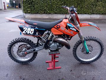KTM 125 EXC 2T DEL 2005 vendo moto per non utilizzo, usata sempre in pista trattata alla perfezione,lavaggio ad ogni uscita dalla pista, il motore è stato rifatto con un totale di 44 ore , non targata. uso solo per pista