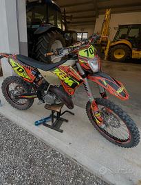 Vendo KTM exc 125 annata 2009, moto usata da amatore con motore completamente rifatto da circa 40 ore. La moto monta diverse powerparts come pancia Hgs e terminale Pro Circuit r304, inoltre monta manubrio renthal twinwall in ergal arancione, gomme metzler six days hard extreme con mousse. La moto ha tripla omologazione e prima infatti era motard. Moto splendida senza alcun lavoro da eseguire, perfetta per i 16 anni e molto divertente. Vendo per passaggio a cilindrata superiore. Tagliando sempre eseguito ogni 15 ore. Il prezzo non è trattabile