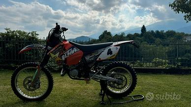 Vendo KTM 125 EXC causa passaggio a cilindrata superiore. Moto in ottime condizioni, pronta all’uso, sempre mantenuta con cura. ✅ Lavori recenti: * Pompa frizione appena rifatta * Pastiglie freni nuove + disco freno anteriore nuovo 🔧 Accessori montati: * Stacca massa da cross * Frecce nano LED * Porta targa estraibile 🛞 Gomme al 70% Moto divertente, perfetta sia per enduro che per uso misto. 📍 Disponibile per visione 💬 Contattami per info o altre foto