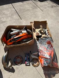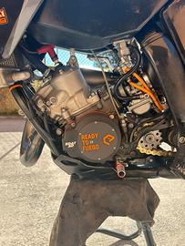 Vendo bellissimo ktm exc 2010 completamente revisionato da cima a fondo, sempre tenuta maniacalmente e sempre fatta controllare periodicamente. Vendo per passaggio a moto A2 NESSUN LAVORO DA FARE MOTORE completamente rifatto 60 ore fa (da contaore) biella pistone cuscinetti paraoli guarnizioni ecc. Pastiglie freno ant post cambiate 2 h fa insieme alla trasmissione completa (14-50) e al filtro . La moto monta scarico hgs completo montato quando ho rifatto il motore Impianto frenante e frizione spurgati e revisionati al cambiamento di trasmissione Forcelle anteriori e moto appena rifatte da personale certificato wp e indurite per uso motard. Estetica Grafiche personalizzate (no name) Adesivi bicolor cerchi Leve, puntalino freno e cambio in ergal Manubrio rental fatbar Paracolpi ktm Paratelaio ktm Tamponi ant e post, copricarter e parapignone soat 3d Copriforcellone neri Portatarga camoletto estraibile Comando gas nuovo Parafango ktm sx 125 e faro ktm led. Prezzo Enduro 4.900€ Prezzo Motard 6.700€ VALUTO PERMUTA CON 250 2t oppure 450 4t motard Con la moto cendo anche 1 paio di plastiche complete, 2 pance originali, silenziatore messico silenziatore originale, cerchi enduro originali ktm, inoltre cedo anche altri pezzi originali. Per ogni info non esitate a contattarmi