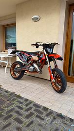 vendo a malincuore per passaggio a cilindrata superiore. le foto parlano da se, moto tenuta maniacalmente con regolari cambio olio, regolare carburazione e utilizzo di oli miscela top di gamma. il blocco ha attualmente 370h, ma il pistone è stato rifatto da 60h (con ricevuta del meccanico). da 20h sono state revisionate pompe e pinze freno, cambiate le pastiglie e il disco anteriore (con ricevuta del meccanico). la moto monta gomme pirelli diablo rosso 4 all'80% circa. le gomme sono montate su cerchi excel color arancio senza neanche un segno. scarico completo originale in ottime condizioni con solo una bozza sull'espansione. con la moto vendo anche una coppia di cerchi 19/21 gommati al 90% in ottimo stato, un kit completo di plastiche graficate factory e diversi ricambi annessi. essendo inoltre la versione factory monta piastre GET arancio e altri accessori che vanno di pari passo con l'allestimento in questione. aggiungo inoltre che la moto è dotata di impianto elettrico completo (statore+batteria) con faro, frecce e stop funzionanti. prezzo trattabile, fate offerte!