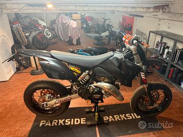 vendo ktm exc 125 2003 targata e revisionata, pistone athena forgiato con circa 45 ore, valvola di scarico e per perni messi nuovi originali da 10 ore, kit revisione carburatore, scarico fmf shorty con lana nuova, filtro nuovo con neanche 1 ora di utilizzo, codone posteriore restyling 2005/07 servatoio wrappato nero ma la pellicola si è rovinata, faro anteriore a led perfettamente funzionante anabbagliante / abbagliante, devio luci nuovo, porta targa one estraibile e diversi altri lavori eseguiti il kit motard non è incluso com la moto