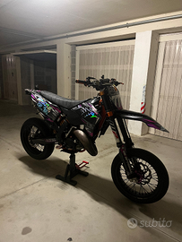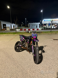 la moto presenta il motore appena rifatto con 20 ore insieme alla moto do diversi pezzi (accensione originale, silenziatore hgs,3 kit di plastiche,cerchi sia enduro che motard,pignone da 13-14. la moto presenta molti altri pezzi che se vi interessano scrivetemi in dm,la moto è in ottime condizioni