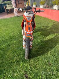 La moto è omologata motard a libretto, revisione valida fino al 2027. Monta terminale hgs con pancia fmf factory, corona da 45 e pignone da 13, gomme michelen pilot 80%, entrambe le pasticche nuove con relativo olio dot4, carburatore aperto e rivisto, sostituito filtro dell’aria con un twin air della ktm, oltre alla moto cedo coppia cerchi enduro con semitassellate, corona originale, paraleve, terminale fmf shorty. Sicuramente dimentico qualcosa, per qualsiasi info contattatemi solo se realmente interessati, non ho fretta di vendere