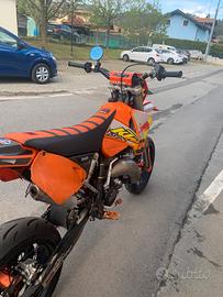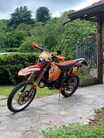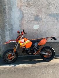 vendo ktm exc 125 2003 moto in buone condizioni, omologata per 1 persona monta: - pistone con 40 ore - carburatore Keihin 38 - gomme cambiate ad agosto - disco anteriore 320 flottante con sposta pinza - rapporti 14-45 (?) - fanale led - specchietto a manubrio - parafango modello 2018 - copri sella 24 mx - kit grafiche - espansione DEP - terminale PROCIRCUIT 304 - radiatore maggiorato - filtro aria appena pulito e ingrassato - più vari pezzi arancioni in ergal - NON omologata motard ma cedo anche cerchi motard a settembre sono stati svolti: revisione e pulizia valvola di scarico, carburazione e pulizia carburatore, pulizia interna espansione, pulizia e cambio lana di roccia del terminale, pulizia cilindro con ultrasuoni, cambio polmone, cambio collettore carburatore, revisione pacco lamellare. oltre a componenti già montati cedo anche: - cerchi enduro - 2 paia di paramani - espansione originale - terminale originale - parasteli originali - mascherina e fanale originale - mascherina piatta - parafango anteriore e posteriore originali - corona enduro - catena arancione - mascherina 2018 mai usata con faro 2018 - fianchetti posteriori graficati neri come in foto. unici problema: frecce non funzionanti per colpa di una freccia posteriore scollegata e luce posteriore funzionante ma con fanaletto di plastica rotto vendo per passaggio a auto no perditempo prezzo trattabile