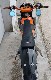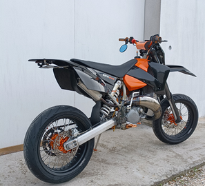 Vendo come da titolo ktm exc 125 con tripla omologazione Motard Enduro Cross. Monta dei cerchi motard di 24mx gommati metzeler racetec 5 ancora in ottimo stato, in più cedo i cerchi originali da enduro dove al posteriore monto una pirelli rallycross nuova.