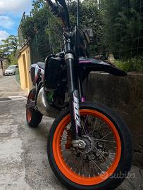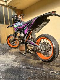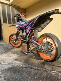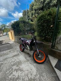 vendo per passare a cilindrata superiore la moto è stata rifatta ultimamente di grafica e carburazione le ruote sono in buono stato, la moto a 30 ore di pistone rifatto dal proprietario precedente, la moto monta pancia fmf per ktm con silenziatore leovince, la moto ha prestazioni piu elevate di un normale 125 scrivere solo se interessati grazie. prezzo leggermente trattabile