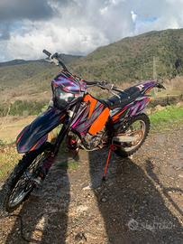 valuto scambio con SH 125. KTM EXC 125 anno 2006 targato in ottime condizioni perfettamente funzionante con sella nuova appena cambiata, scarico FMF, grafiche nuove,carene di anni più recenti, copri raggi dello stesso colore delle grafiche , manopole nuove, motore rifatto non da molto, olio sempre cambiato, manutenzione sempre fatta, faro e contachilometri funzionano ma non correttamente.