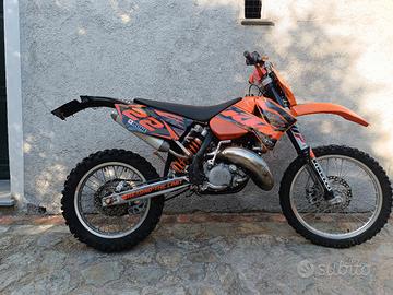 Vendo KTM 125 exc del 2006 in buone condizioni generali. Lavori eseguiti: -boccole forcellone -revisionato carburatore -revisionata pompa frizione -cambio olio frizione ogni 30 ore -lavaggio serbatoio con pulizia rubinetto benzina -sostituzione paraolio cambio -regolata valvola di scarico -sostituzione passacatena -controllo pacco lamellare -sostituito tubo del freno anteriore con un in treccia nuovo -Sostituito manubrio con uno accossato Insieme alla moto cedo altri pezzi. Prezzo trattabile