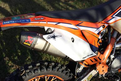 KTM EXC 125 del 2014, modello Six Days. Utilizzata principalmente su strada e per saltuarie uscite in enduro. È stata ben tenuta, sempre in garage. Dopo ogni uscita in enduro ho sempre pulito, lavato e oliato il filtro dell'aria e ingrassato la catena. Il motore ha 65h all'attivo. Pistone e biella nuovi, cilindro rettificato. La moto monta scarico terminale Akrapovic ed espansione FMF, con paracolpi in carbonio. Cedo anche entrambi gli scarichi originali. Sono presenti diverse parti in Ergal arancione, come: - Leva frizione e freno anteriore - Puntale freno posteriore. - Piastre centrali della Forcella anteriore - Leva del Cambio - Coperchio olio frizione - Para frizione - Corona Monta forcelle WP Maggiorate. Pastiglie dei freni sostituite circa 20h fa. Pneumatici in buono stato: anteriore 90% - Posteriore 80% Per più foto e info varie, non esitare a contattarmi.