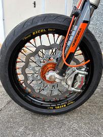 Vendo ktm exc 125 targato Rifatto completamente da telaio -Motore con 70h -0h di pistone (in rodaggio con fattura del meccanico) -Carter e cilindro lavorati -Pistone e Biella wossner -Accensione e centralina sx -Espansione e silenziatore hgs -telaio riverniciato arancione ral ktm -piastre faor offset regolabile interasse 200 -mono revisionato tarato motard -forcelle revisionate tarate motard -Impianto frenante brembo -pinza brembo m50 4 pistoncini -disco 320mm -spostapinza vm racing -tubo freno in treccia arancione accossato -pompa brembo 16x18 -coprisella wob design -Impianto elettrico con luci, frecce a batteria installata nella cassa filtro -Radiatori nrteam maggiorati -Cerchi Excel motard -Numerosi ricambi in dotazione -Revisione fino a luglio 2027 -Gomme Pirelli rosso diablo 2 all’80% PREZZO TRATTABILE