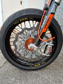 Vendo ktm exc 125 targato Rifatto completamente da telaio -Motore con 70h -0h di pistone (in rodaggio con fattura del meccanico) -Carter lavorati -Pistone e Biella wossner -Accensione e centralina sx -Espansione e silenziatore hgs -telaio riverniciato arancione ral ktm -piastre faor offset regolabile interasse 200 -mono revisionato tarato motard -forcelle revisionate tarate motard -Impianto frenante brembo -pinza brembo m50 4 pistoncini -disco 320mm -spostapinza vm racing -tubo freno in treccia arancione accossato -pompa brembo 16x18 -coprisella wob design -Impianto elettrico con luci, frecce a batteria installata nella cassa filtro -Radiatori nrteam maggiorati -Cerchi Excel motard -Numerosi ricambi in dotazione -Revisione fino a luglio 2027 -Gomme Pirelli rosso diablo 2 all’80% PREZZO TRATTABILE