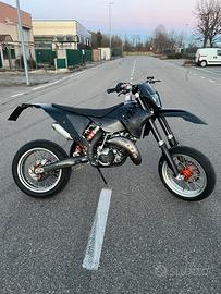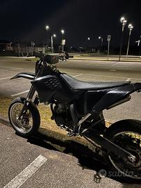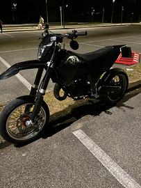 Vendo moto motard perfettamente funzionante, sempre tenuta in modo maniacale e usata con cura. La moto parte sempre al primo colpo e non presenta alcun problema meccanico. Caratteristiche: •Scarico completo HGS •Motore con 80 ore Accessori e pezzi inclusi: •Disco freno da 320 mm •Sposta pinza freno •Varie plastiche arancioni •Fari di ricambio •Catene di ricambio •Altri pezzi e componenti PREZZO TRATTABILE!!!!