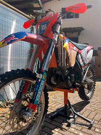 KTM EXC 125 tenuta molto bene, sempre curata e mantenuta con attenzione Restyling completo rifatto nel 2021 Trasmissione NUOVA cambiata nel 2023 Ovviamente è una moto da cross quindi aspetto vissuto Rifatta nel 2021 con: -Plastiche nuove -Grafiche Redbull racing scproject -Paraforcellone -Pulizia para oli anteriori -Sostituzione lana di roccia scarico -Pedalina di avviamento in Ergal -Pedale cambio in Ergal -Filtro aria nuovo -Trasmissione cambiata nel 2023 (pignone, corona e catena) -Faro led -paramani -Leva frizione anti rottura -Paramotore Acerbis ⚡ Ideale per enduro ⚡ Affidabile, scattante e pronta a tutto ❗ No perditempo ❗ Solo realmente interessati