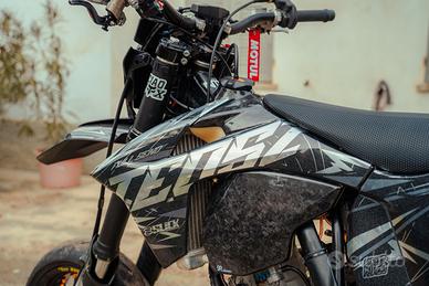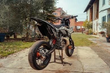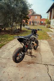 La moto attualmente è in configurazione Motard ma cedo anche i cerchi enduro come in foto,monta svariati accessori come kit handbrake,vmracing,scarico bud racing,cover in carbonio,staffa stunt,pegs e altre Mille cose.