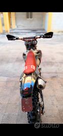 Salve come da titolo vendo ktm excf 250 del 2015,la moto si presenta in perfette condizioni come si vede dalle foto,ha 303h all'attivo. Gomme e mousse anteriori e posteriori al 70%,manubrio renthal 996 ,pedane maggiorate,frizione nuova,sedile nuovo,forcelle e mono fatti a 250h. Carene e adesivi nuovi ed è anche stato sostituito l'intero cablaggio con uno nuovo di zecca.La moto è stata tagliandata ogni 7/8 h.La vendo già tagliandata con olio e filtri nuovi poichè ho da poco sostituito la frizione e non l ho mai piu utilizzata. Il prezzo è trattabile solo dopo presa visione non perdo tempo e non faccio accordi per telefono.