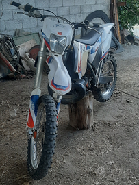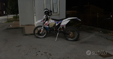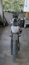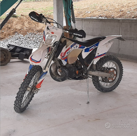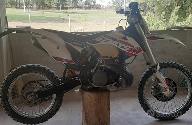 Vendo stupenda KTM EXC 250 2T 2013, targata, 6 marce, a CARBURATORE!!! Moto depotenziata a libretto e GUIDABILE con patente A2! La moto è stata trattata maniacalmente da me, sono state eseguite tutte le manutenzioni necessarie e anche alcune preventive, lubrificata e ingrassata ad ogni uscita, inoltre ho eseguito personalmente nella nostra officina familiare, tutte le varie accortezze e i piccoli accorgimenti, così da rendere la moto sicura e per utilizzarla tranquillamente... Sempre stata fatta la miscela con olio TOTALMENTE SINTETICO: motul 800! Monta uno scarico FMF della ktm powerparts! da un sound inconfondibile e che la fa cantare tanto!... la moto è stata usata per giretti, stesso vicino a casa mia in campagna, maggiormente in sentieri e mulattiere e poi durante la stagione estiva, qualche giro tranquillo su strada... la moto, è potentissima, ho cambiato la molla di precarico della valvola di scarico, ho messo la molla rossa (+morbida), così da avere più coppia ai bassi regimi, ora la moto ha un basso incredibile, tanto da non invidiare nulla alla sorella maggiore ktm 300, e, anzi... essendo un 250, confronto al 300 ha ANCHE molti altri, quindi ha un'erogazione pressoché PERFETTA e lineare. La moto è in perfettissime condizioni, l'unica cosa da fare è armarsi di coraggio e usare questa belva!!!