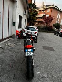 vendo come da titolo KTM exc 250 2t del 2017 (ultima annata a carburatore) La moto è stata comprata a marzo come regalo personale, versione enduro come da foto, a 130h, fatto subito tagliando completo e cambio gomme da enduro e camera d'aria, percorso due settimane in attesa dei pezzi nuovi per il progetto MOTARD. qui vi elenco tutti i pezzi: -kit cerchi FABA nuovi - gomme 160 MICHELIN PILOT POWER 5 (85%) - kit impianto frenante ACCOSSATO completo con pompa 16x16 radiale - rapporti 13-42 - impianto di scarico FULL PRO CIRCUIT - kit plastiche complete Acerbis annata 2017 - paracolpi NEKEN ovviamente fornisco tutti i pezzi originali della moto. la moto dopo essere stata trasformata in motard ha subito anche il cambio pistone per una maggiore sicurezza, in aggiunta il suo conta ore per una manutenzione piu precisa, la moto è stata usata motard per 4-5 uscite sui colli e qualche uscita da parenti e amici, per un totale di 30h circa da rifacimento pistone. La moto è sempre stata lavata dopo ogni giro e la pancia oleata di conseguenza insieme alla catena con petrolio bianco e il suo olio. prezzo trattabile grazie
