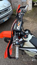 Vendo bellissima ktm 300 2t del 2017 ultimo modello a carburatore la moto monta diversi accessorri come : parapancia in carbonio , copri telaio , copri disco anteriore e posteriore , copri forcelle e copri forcellone , ventola di raffreddamento per radiatore , coprimotore acerbis.