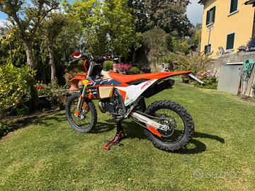 Vendo per inutilizzo KTM EXC 2t 2024 101 ore di utilizzo. Tagliandi regolari ogni 20 ore. Comlpleta di accessori di prima vendita oltre a paramotore, proteggi marmitta in carbonio, paramani e proteggi disco posteriore. No permute no scambio. Il prezzo e’ trattabile con buonsenso. Vendo se interessato carrello portamoto Ellebi (trattativa riservata)