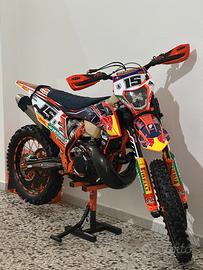 Vendo KTM exc tpi ERZBERGRODEO 300 2023 1 di 500. Unico proprietario. Acquistata presso concessionario ufficiale KTM. Moto con 85 ore di telaio, con manutenzione regolare (tenuta maniacalmente). La moto monta i seguenti accessori, Powerparts e modifiche: - Silenziatore Akrapovic Slip On - Espansione FMF Factory Fatty - Faro led - Leva freno e frizione anodizzati - Manopole antiscivolo + ciambelle - Morsetti manubrio anodizzato - Coperchio pompa freno e frizione anodizzato - Protezione manubrio a cuscino - Piastra di sterzo anodizzata - Protezione piastra - Protezione disco anteriore maggiorato e ventilato - Protezione espansione in carbonio - Paramotore maggiorato e ventilato - Protezione leva cambio - Pedane maggiorate anodizzate - Cavalletto anodizzato - Sella antiscivolo - Protezione attuatore anodizzato - Paratelaio maggiorato - Protezione forcellone a calamita - Corona anodizzata - Porta targa a sgancio rapido - Registri catena anodizzati - Bulloneria asse anteriore e posteriore in ergal - Protezione contaore anodizzato - Puntale freno anodizzato - Tappo olio anodizzato - Adesivi protettivi cerchi - Adesivi protettivi forcelle - Kit grafiche completo replica Red bull KTM Factory Racing - Cerchi DID dirt star anodizzati - Protezione disco posteriore anodizzato - Cinghia di sollevamento anteriore e posteriore - Peso al volano 150 GR. - Testa ricavata dal pieno ribassata - Tubi in silicone x bypass - Tappo radiatore con sensore - Doppia mappatura - Estensione serbatoio olio pompa freno posteriore - Filtro carburante maggiorato - Calza filtro serbatoio benzina - Protezione carter frizione e accensione maggiorato - Cavalletto in ergal - Kit completo cartucce wp - Forcelle anteriori ribassate per anti-sbacchettamento - Mousse anteriore e posteriore - Disco anteriore e posteriore maggiorato flottante - Protezione cuscinetto ruota anteriore e posteriore - Protezione piedini - Doppia protezione scarico - Viteria e bulloneria in ergal €9000 allestita SPEDISCO OVUNQUE