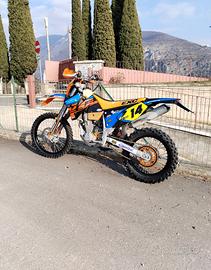 Valuto la vendita della mia KTM EXC 400 FACTORY RACING del 2002. moto Tenuta con cura. ma usata in enduro (segni di utilizzo) 14.700km revisionata. pistone sostituito dal vecchio proprietario (non ho fattura ma le guarnizioni sono visibilmente nuove) da quando l'ho comprata ho fatto circa 70 ore di utilizzo e tagliandata ogni 10 ore (motul 7100 10w50) -catena corona e pignone 30 ore fa -carburatore revisionato completamente -gomme praticamente nuove -freni anteriori 50% posteriori 80% -disco posteriore nuovo -tubi radiatore siliconici -targa in metallo originale e targa gialla stampata in 3D per gare -FORCELLE E MONO revisionati 10 ore fa da specialista e tarate per il mio peso. -cuscinetti ruota nuovi (tutti e 4) -leva cambio nuova -luquido freni nuovo -luquido frizione magura Blood nuovo -batteria al litio (1 anno) -bulloneria più rovinata sostituita con bulloneria originale nuova -cavo acceleratore nuovo -guarnizione ghigliottina nuova -candela 20 ore prezzo poco trattabile.