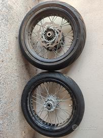 Vendo per inutilizzo bellissima KTM EXC 525 del 2005 (targata). Moto in buone condizioni, perfettamente funzionante, sempre tagliandata e revisionata. Monta scarico akrapovic completo. Vendo competa di cerchi enduro gommati e cerchi Motard gommati (copertoni nuovi su entrambi i cerchi).