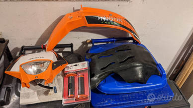 Set di plastiche bianche (montate) e set originale arancione. Vari accessori e pezzi di ricambio.