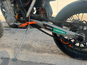 Moto in perfette condizioni mai usata in pista monta fanele led KTM originale valore 400? scarico akrapovic, molti altri pezzi di ricambio inclusi nel prezzo, necessità cambio gomme e batteria ! Doppia omologazione moto targata é rara !