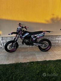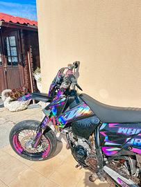 Vendo ktm exc del 2006 ma del 2006 ha rimasto solo il telaio, motore rifatto poco piu di un mese fa, monta i seguenti pezzi -Full hgs -Cerchi da 17 -Manopole gripp -Faro led -Grafiche 100% personalizzate -Adesivi forcelle -Adesivi cerchioni bicolor -Portatarga pieghevole con sgancio -Carburatore 36 La moto è stata sempre tenuta dentro una casetta quando pioveva, quindi non è mai stata esposta all’acqua, mai dato un problema poichè è stata tenuta maniacalmente Prezzo leggermente trattabile❕