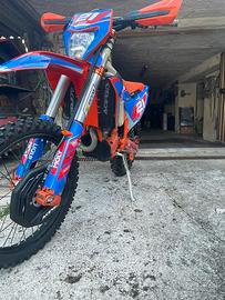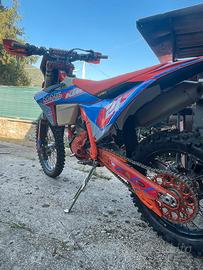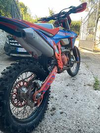 Vendo ktm exc-f 250 2024, moto sempre tagliandata ogni 8h, uso amatoriale, forcelle e mono rivisionati da 15h, all attivo 97h di utilizzo vendo per cambio categoria, tantissimi optional: 5 filtri aria (2 nuovi), copri pompa e firizione in ergal, mouse ant e post, sfiato serbatoio in ergal, tappo frizione in ergal , leve freno e frizione in ergal regolabili e antirottura, collarini manubrio in ergal,impianto accensione e spegnimento semplificato,impianto luci semplificato, sella One gripper (+ originale della valle + One gripper nuova), due set manopole odi nuove, pasticche ant e pos appena sostituite(+ altra coppia ant e post nuove),retine radiatori, protezione disco ant e post + forcellone+ piedini forcelle+ carter frizione e statore,piastre ergal,selettore mappe tc quick s, bulloneria ergal,perno ruota ant sguancio rapido ergal,disco ant flottante e post pieno,puntale freno post maggiorato in ergal + 2 nuovi, 3 kit plastiche (2 nuovi),+ tutti ricambi originali, ventola radiatore, ecc